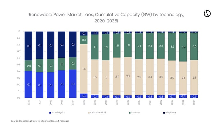 The graph here shows GlobalData’s solar and wind capacity growth projections for Laos. (Photo Credit: GlobalData)